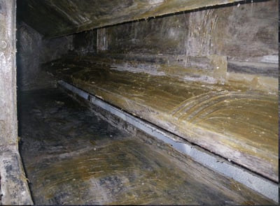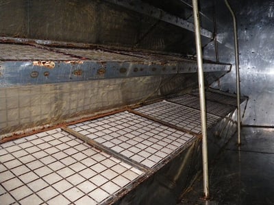 乾燥炉内には、長年の使用によりホコリなどが、壁面、排気ダクト内、レール等にたまります。