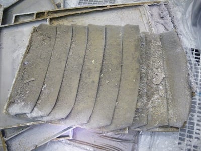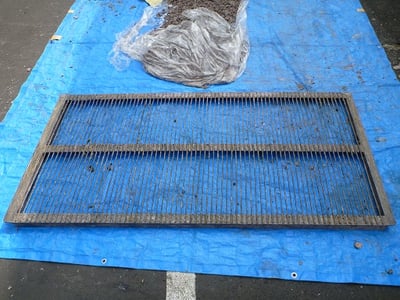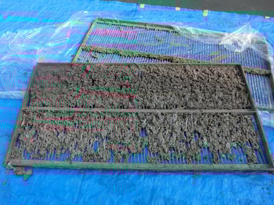 スクリーンは各種塗装ブース(水洗・乾式・オイル)によって形状が異なり、タイプに応じた清掃を行います。紹介した画像は水洗式スクリーンの清掃例です。