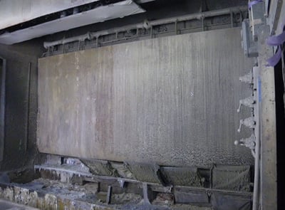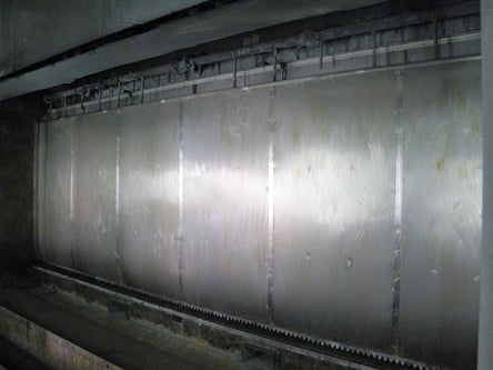 塗装ブースでは、乾燥炉を設け、塗料の乾燥を早めます。この時、塗料の成分である合成樹脂等から「ヤニ」が発生し、乾燥炉の天井面や、壁面、フィルター室などにたまります。