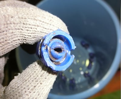 穴が大きいノズルの場合は、ライザー管清掃の際、一緒に清掃し、目詰まりを直してから再度取り付けます。