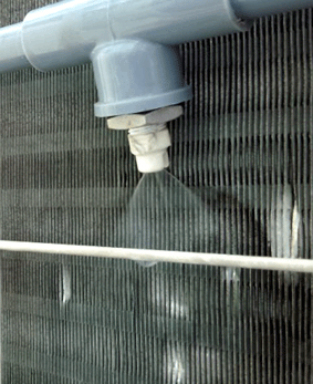 これを利用して、エアコン室外機の放熱フィンに、外気温と時間で制御されたポンプにより、水を噴霧します。