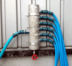 また、分岐管(ヘッダー)を介して、多数の室外機への噴霧も可能です。